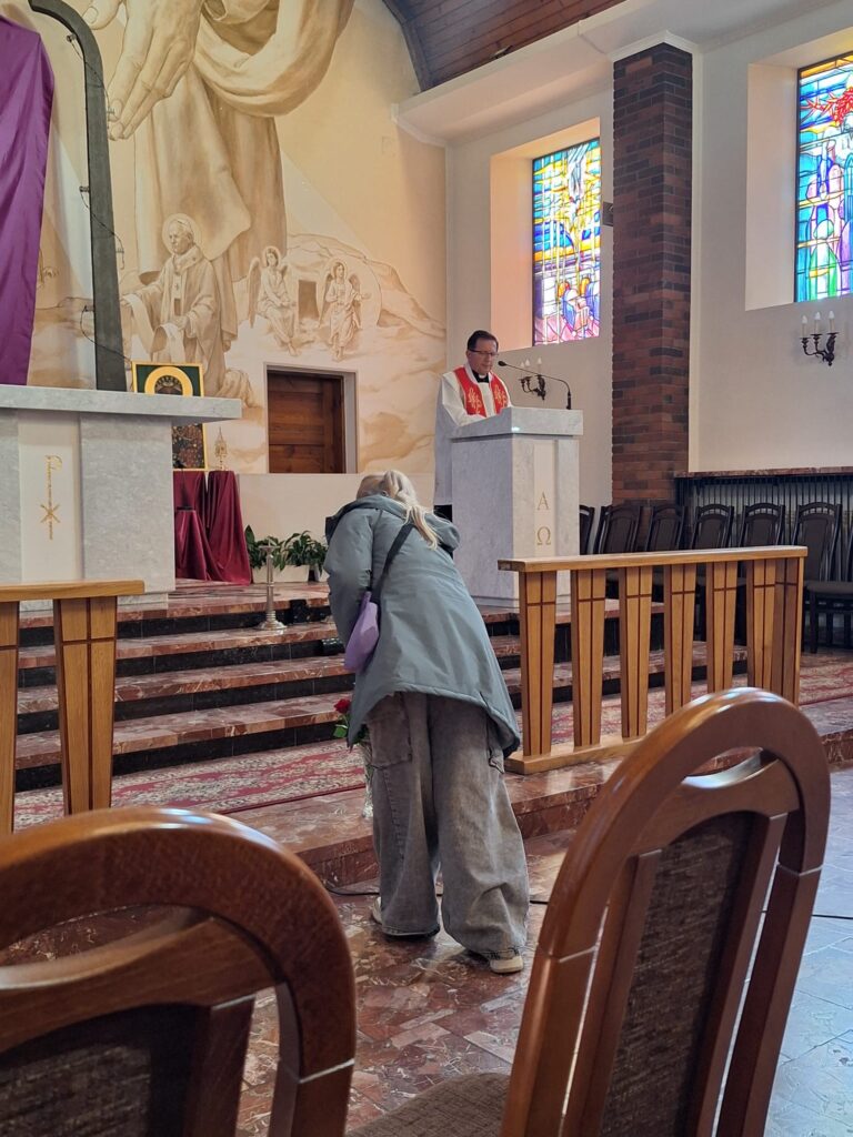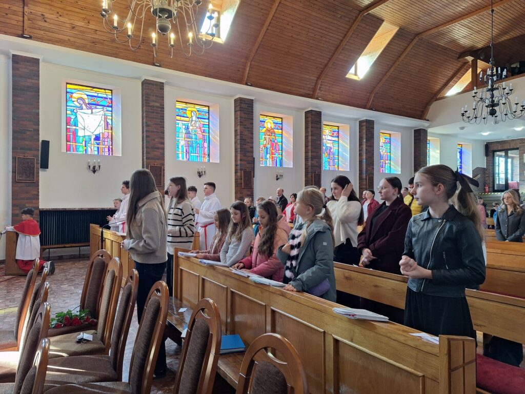 W Wielki Piątek o godzinie 15.00 odbyła się Droga Krzyżowa w naszym kościele, prowadzona przez naszą scholę, w której przepraszaliśmy Boga za nasze grzechy, czego wyrazem było złożenie róży przed ołtarzem.